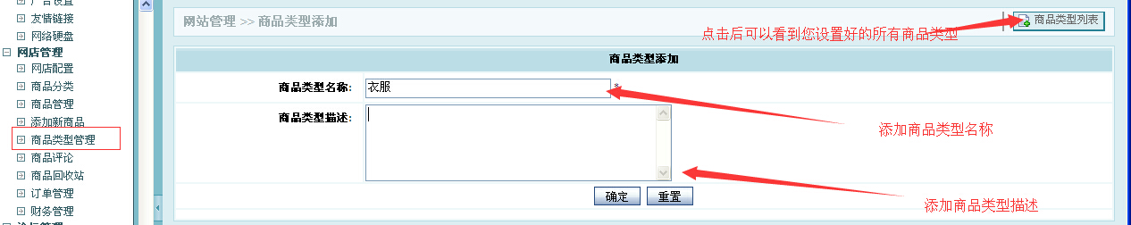 商品類型管理:在這里您可以添加/刪除/價(jià)格/上下架等操作。