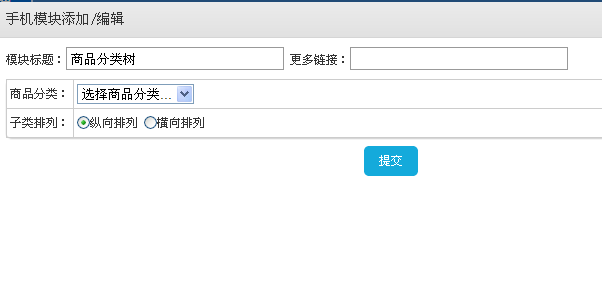 單擊需要添加的模塊類型,會(huì)彈出編輯頁面 如圖 產(chǎn)品分類(您在電腦上編輯好的分類 您在手機(jī)網(wǎng)站上調(diào)用就可以了)