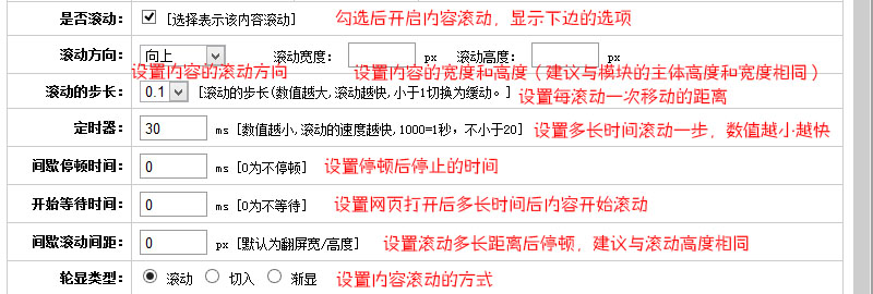 內(nèi)容滾動(dòng)各項(xiàng)參數(shù)介紹