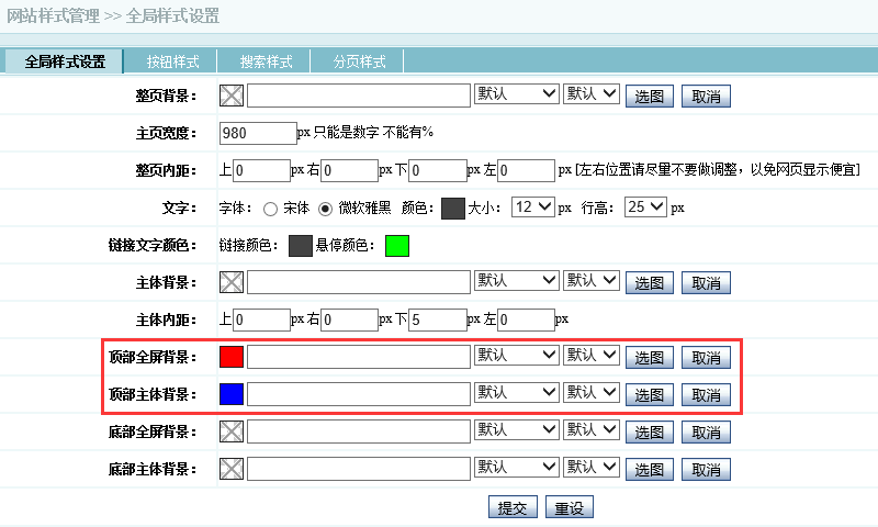 登陸網(wǎng)站后臺 > 網(wǎng)站樣式管理 > 全局樣式管理 > 全局樣式設(shè)置
