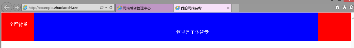 如:將頂部全屏背景設(shè)置為紅色,頂部主體背景設(shè)置為藍(lán)色,效果如下