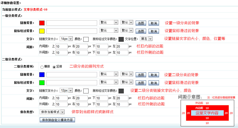 內(nèi)間距:二級(jí)欄目內(nèi)側(cè)的邊距