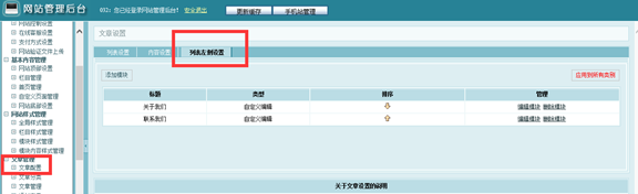 那么左側(cè)要怎么修改呢,首先您進入網(wǎng)站后臺中,在左側(cè)的功能列表中找到 文章管理》文章配置