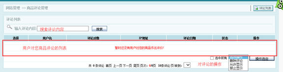 可對用戶的評論進(jìn)行操作,刪除評論,是否顯示評論等。