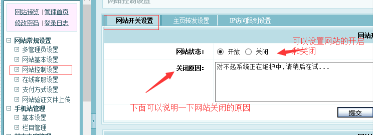 網(wǎng)站控制設(shè)置》網(wǎng)站開(kāi)關(guān)設(shè)置
