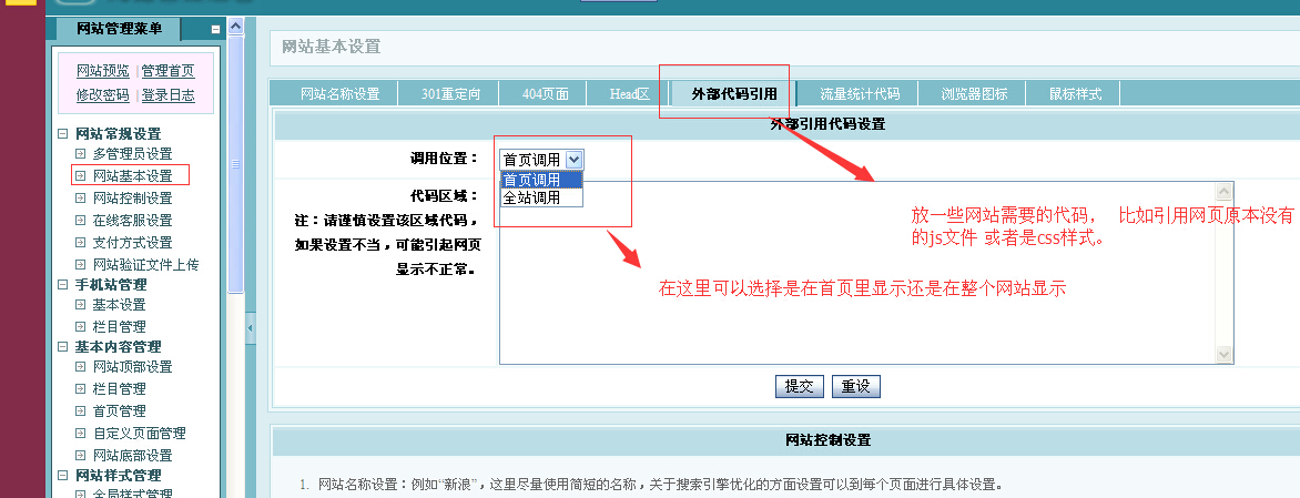 這里您可以添加一些如客服代碼等外部調(diào)用代碼,請謹慎設置,如果由于設置引起的網(wǎng)站亂碼或無法正常訪問,請及時刪除